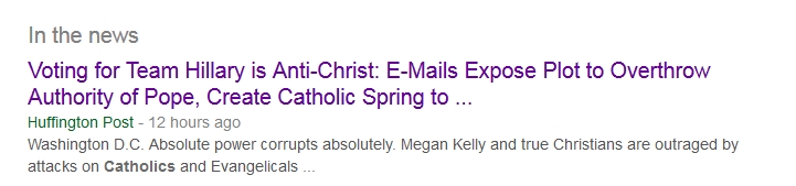 When NewsTarget conducted a Google search of Clinton-related stories about recent emails showing her plotting against the Catholic Church, the following headline appeared: