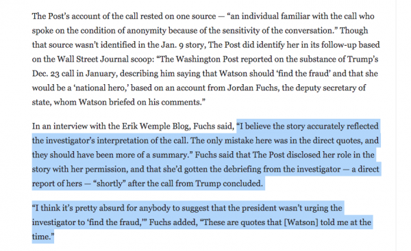 This Washington Post correction was necessitated by the release of an audio recording, which showed that Trump’s comments on the call were misquoted “based on information provided by a source.”
